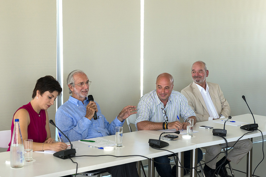 Having traversed 33 months of life, and having achieved major construction milestones, a Press Conference took place today at the Visitors Center of the SNFCC, where the project’s architect, Renzo Piano, alongside the Foundation’s management, presented the overall progress of the project to date, focusing on its innovative environmental sustainability features.