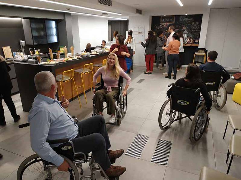 Living with a physical disability in Greece, everyday struggles, and proud achievements formed the core of our discussion with SKEP. Experiential exercises on the everyday obstacles and dangers a person with a disability has to overcome helped us gain understanding but also shed light on the impressive number of accomplishments and opportunities available. The day after, colleagues expressed their gratitude for the experience, which sparked a fruitful dialogue about what can be improved in Greek society. We appreciate suggestions from our SKEP partners on how to further improve accessibility for people with disabilities to events organized by the SNF such as the SNF Annual Conference. Our commitment to create infrastructure that will affect society at large and be accessible to all has been demonstrated through the world-class accessibility practices of the Stavros Niarchos Foundation Cultural Center. This experience with SKEP reaffirmed our resolve in this commitment.