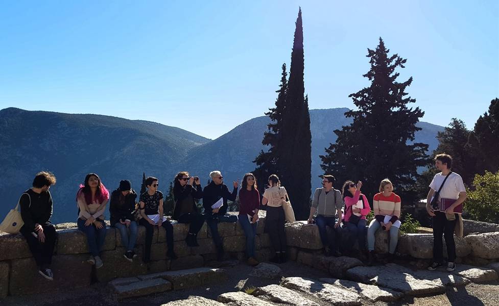 The two-week study abroad program took the Classics students to important cultural sites around Greece—in Crete, in and near Athens, in the Peloponnese, and around Thessaloniki. Classics focuses on the ancient Greco-Roman world, including archaeology, history, language, literature, philosophy, and more, and the trip allowed the Hunter Classics students to see sites tied to their studies firsthand. Hunter professors guided students to important archaeological and historical sites like Knossos, Delphi, Epidaurus, Nemea, and many others they might otherwise have studied remotely but not had the chance to see.