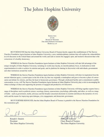 Ίδρυση του SNF Agora Institute στο Πανεπιστήμιο Johns Hopkins των ΗΠΑ