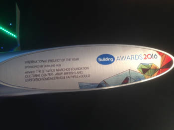 The SNFCC is proud to announce that it has been named Best International Project of the Year in the 2016 UK Building Awards, at a big celebration held last night in London.