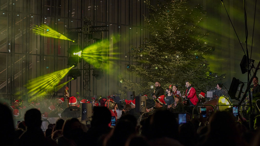 On December 1, Christmas came to life at the SNFCC, in a celebration that kicked off with the illumination of the plane trees along the Canal and the fir trees in the Agora, and continued with Christmas music and carols by ONIRAMA and El Sistema Greece, and a show from the Dancing Fountains.